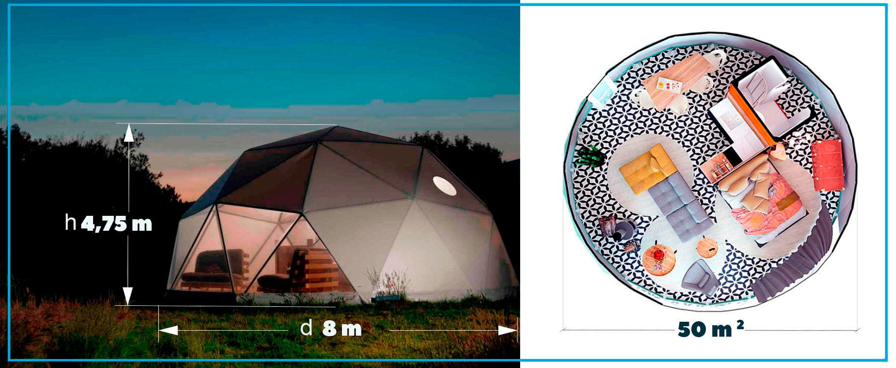 Самый оптимальный купол для семьи! Идеально подходит для перемещения из города в природу. Объем купола позволяет создать жильё общей площадью до 75 кв.м. Два этажа обеспечивают максимальный уровень комфорта для проживания семьи из 5 человек. Вы всегода можете легко разобрать этот купол и переместить себя в другое место.